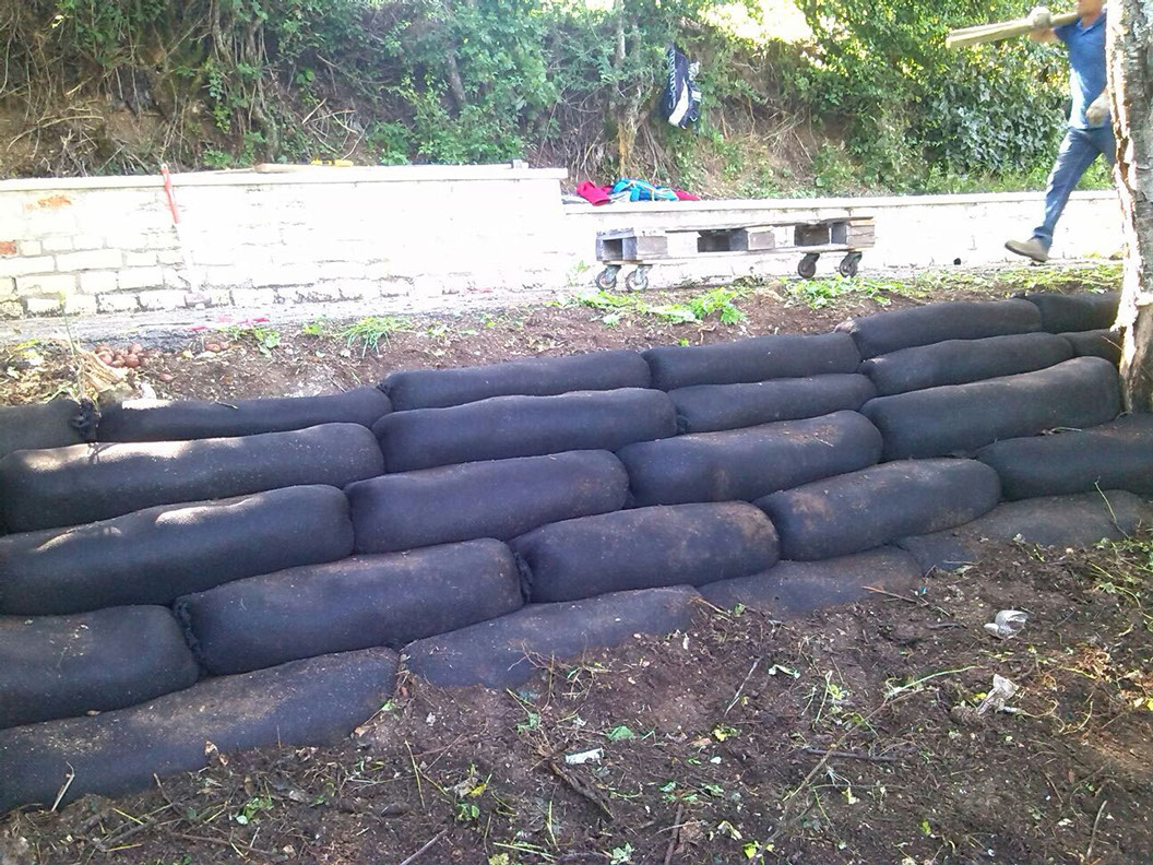 Remake and stabilization of a slope with soxx system and geogrid. San Severino Marche (MC) Italy. Costumer: Local Episcopal Curia
